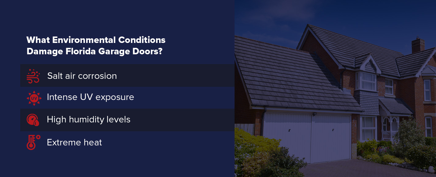 Florida’s unique climate poses an array of issues for homeowners and their garage doors. Environmental conditions that damage garage doors include: